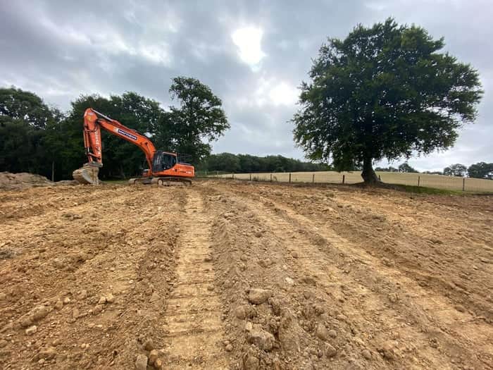 Waterproofing became an obsession. One wall is completely below ground, so we needed road-grade drainage systems: concrete channels, soakaways, and pumps to ensure no water ever reached the structure. Every stream and slope had to be considered — and my husband’s water-divining skills (oddly accurate!) helped us avoid underground flow paths.